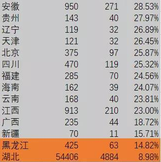 我们可以清晰地看到,甘肃、宁夏的治愈率分别排在第一、第二;湖北、黑龙江的治愈率分别为倒一、倒二。