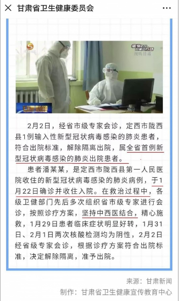 而甘肃,从救治全省第一例患者就让中医全程参与。